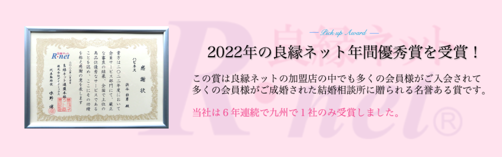 当社は5日に1組のペースで結婚が決まっている成婚実績九州№1の結婚相談所です。また、日本の2大結婚相談所連盟に加盟していますので、たくさんの会員様の中から自分に合った結婚相手を探すことができます。