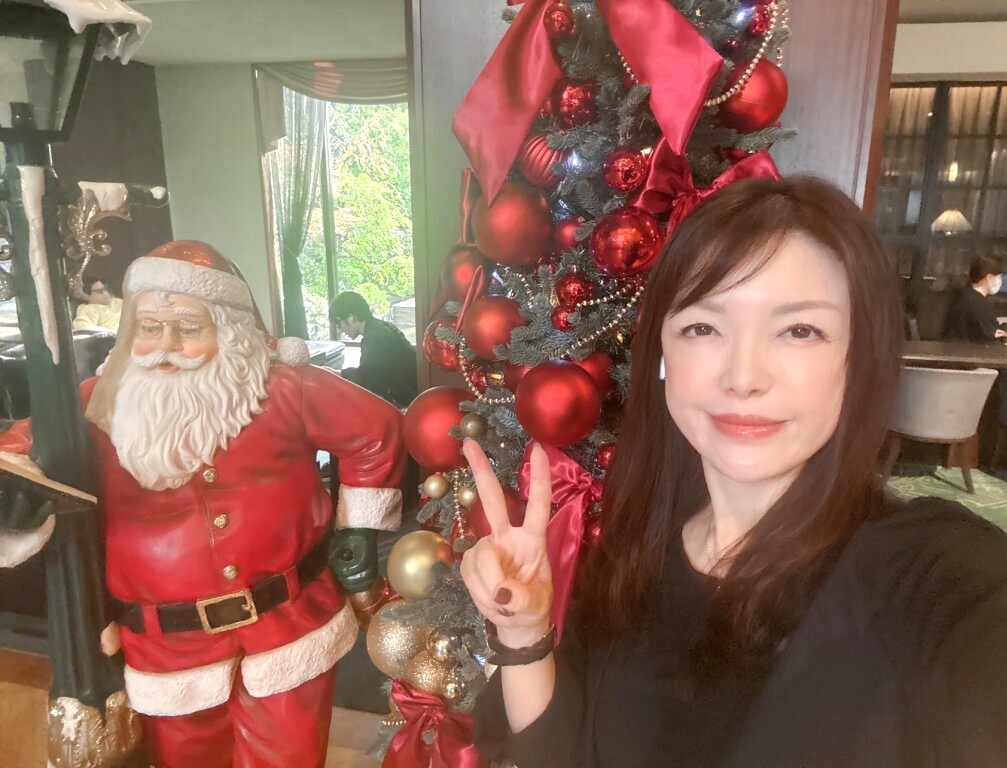 お見合いが行われるホテルに着いた私は、まずはロビーのサンタさんの前で思わずパチリ!