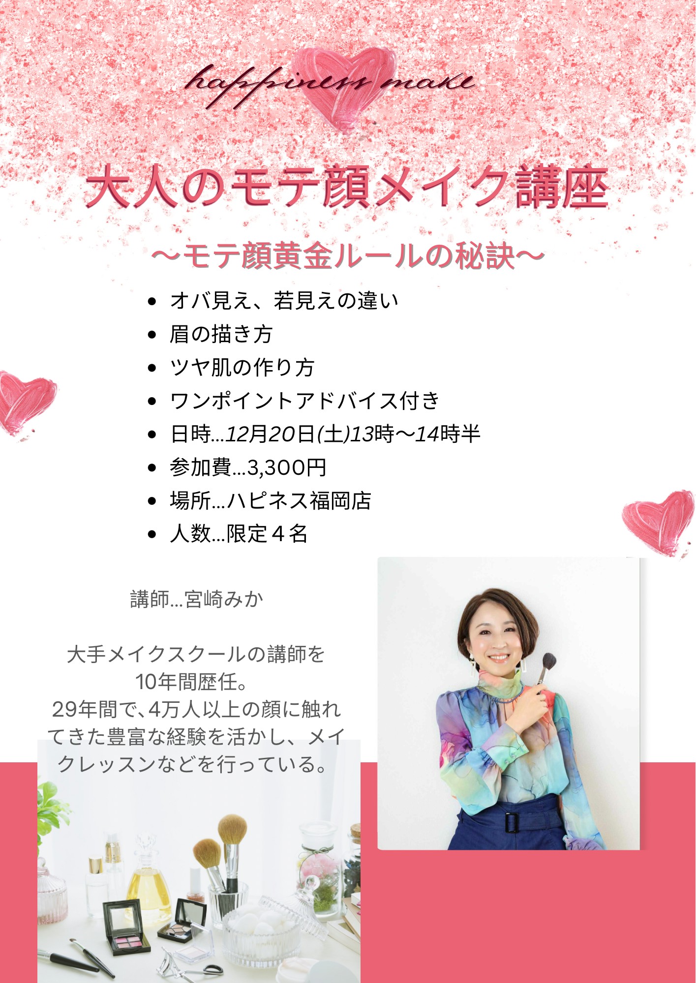 “大人のモテ顔メイク講座”~モテ顔黄金ルールの秘訣~ 開催しちゃいま~す💕